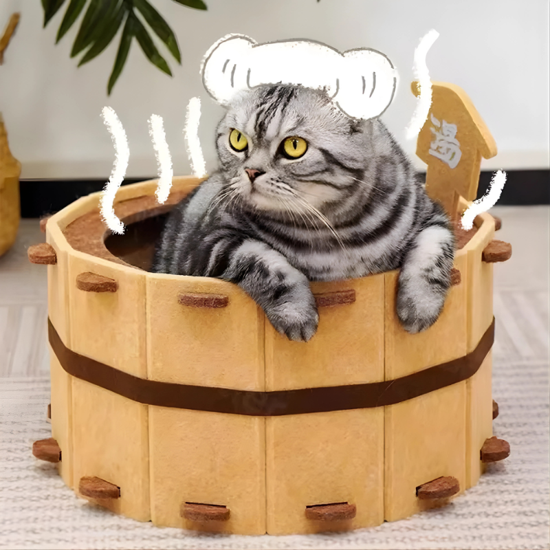 Com formato inspirado em uma pequena banheira, essa caminha semi-fechada envolve o corpo do gato, criando uma sensação imediata de aconchego e segurança.