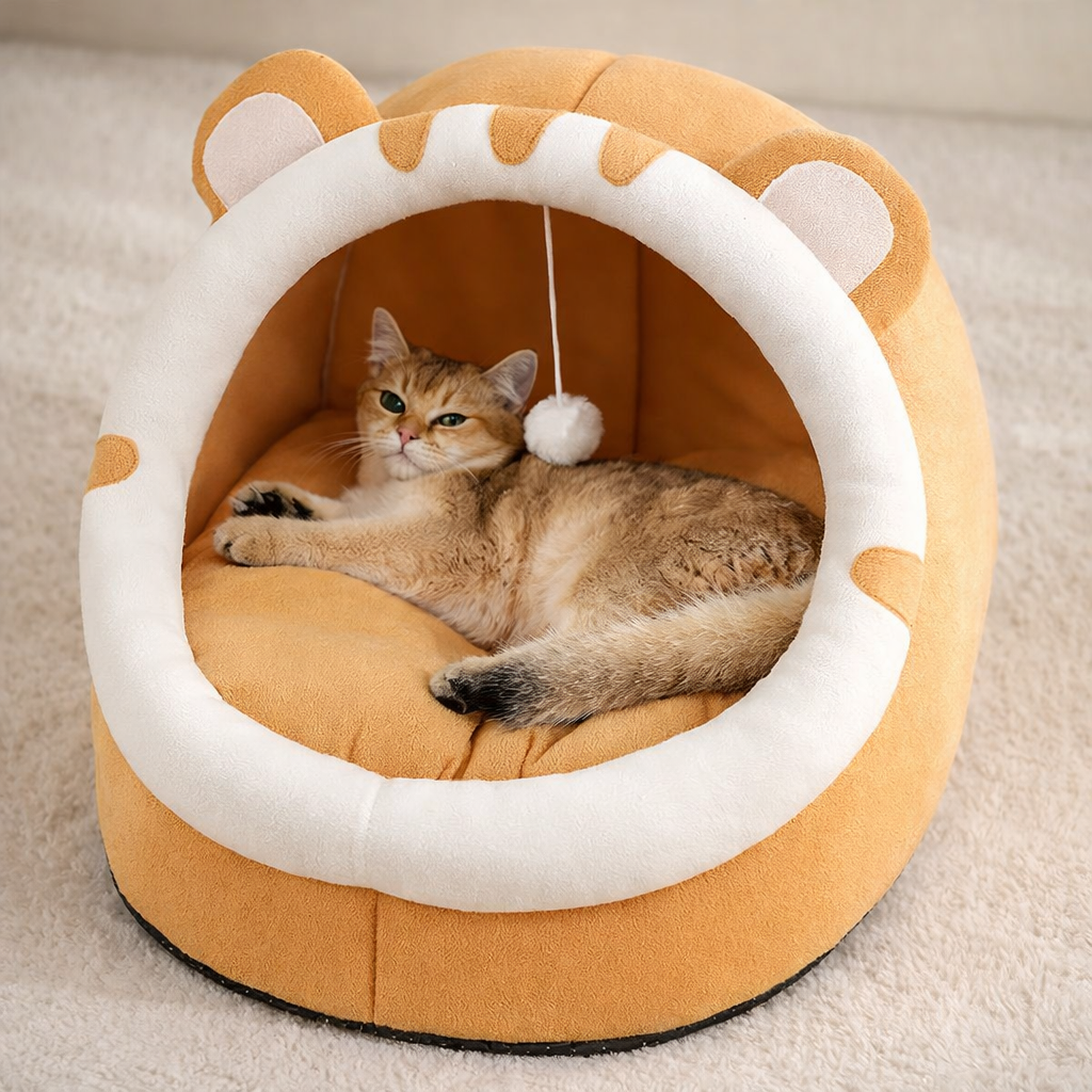 🏡 Refúgio Aconchegante — Com design que simula uma toca, seu gato finalmente se sente acolhido e protegido, tendo agora um espaço pra chamar de seu.