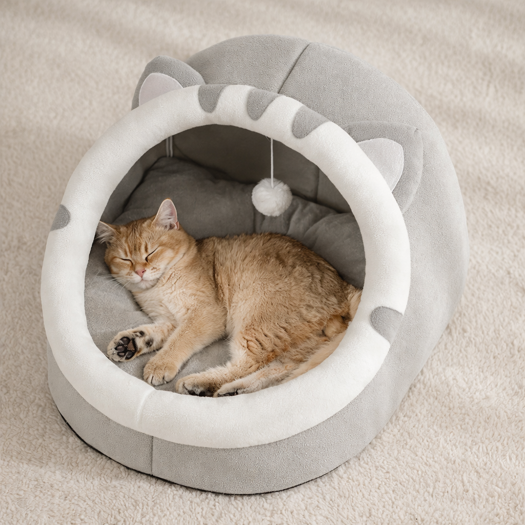 Sua estrutura acolchoada reduz o estresse e cria um ambiente seguro, como se fosse um abraço quentinho. Garantindo um sono profundo e revigorante para o seu gato.