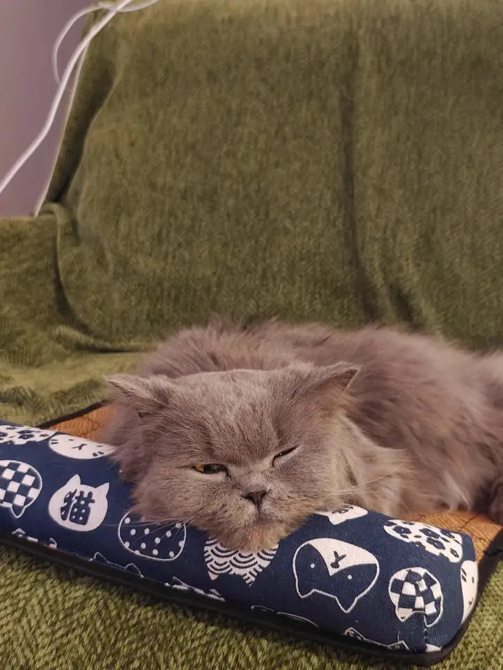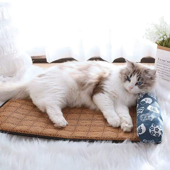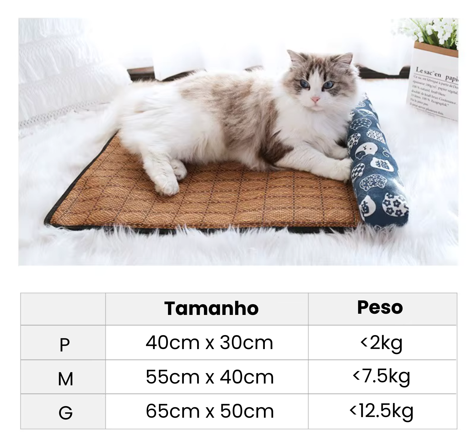 Ela é um tapete macio, elegante e funcional, com apoio confortável para a cabeça, ideal para gatos que gostam de dormir esticados, relaxados e sem sensação de abafamento. Perfeita para dias quentes, ambientes internos e para gatos que valorizam conforto sem excesso.