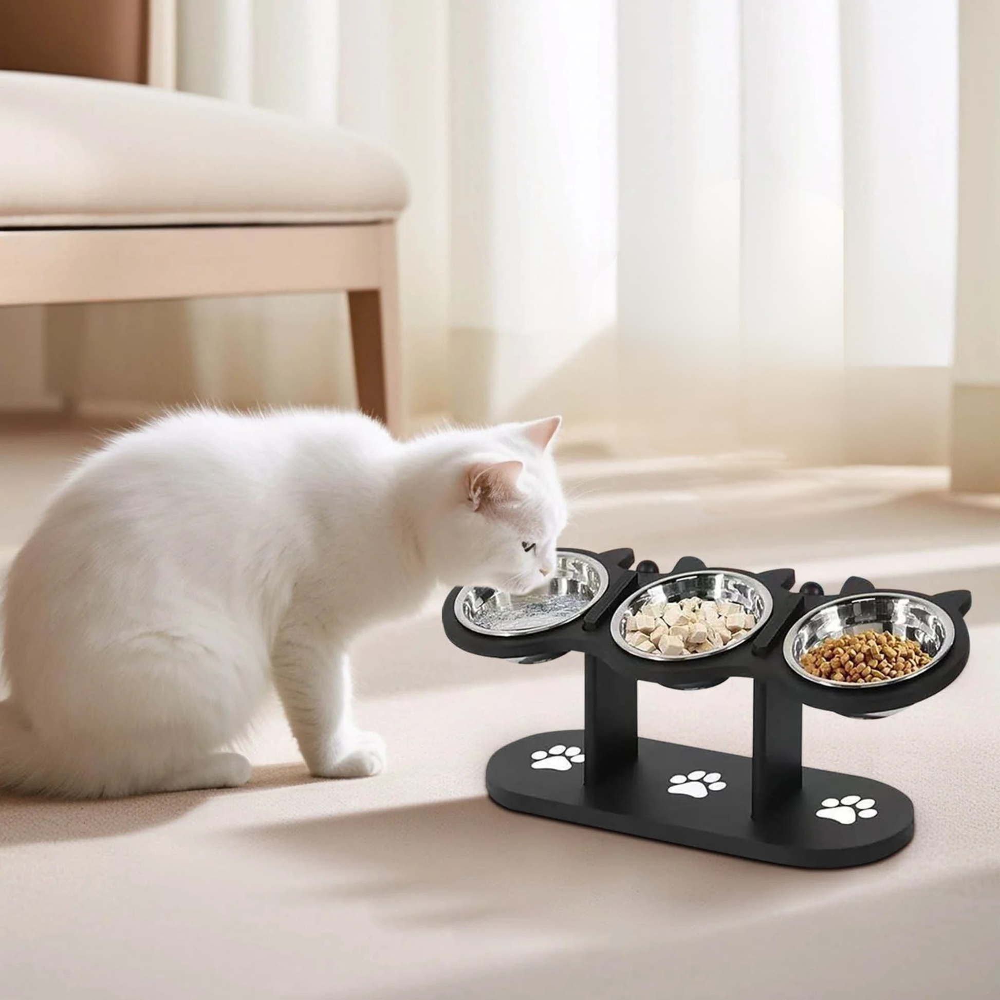 É uma solução completa para deixar as refeições do seu gato mais saudáveis, organizadas e confortáveis 🌟